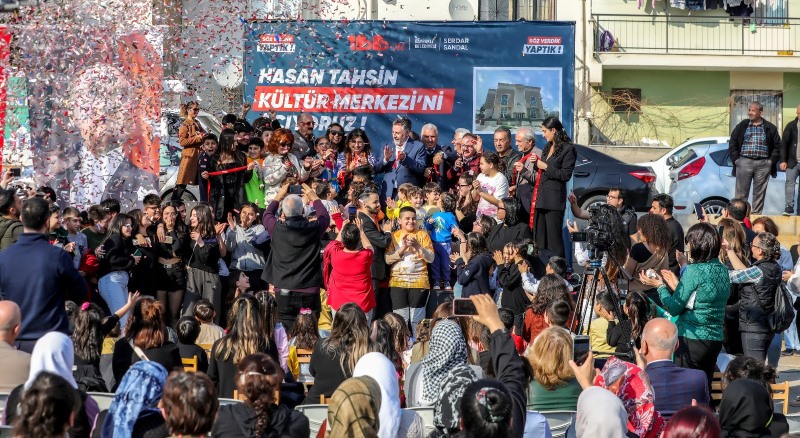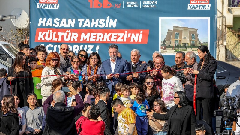 Bayraklı Belediyesi tarafından Postacılar Mahallesi’nde yapımı tamamlanan ‘Hasan Tahsin Kültür Merkezi’ düzenlenen görkemli törenle hizmete açıldı. Yoğun katılımın olduğu etkinlikte konuşan Bayraklı Belediye Başkanı Serdar Sandal, “Görev süremiz boyunca ilçemizin ve vatandaşlarımızın ihtiyacı olan hizmetleri kimseyi ötekileştirmeden, işlerimize siyaseti karıştırmadan, insanları ayrıştırmadan ve her kesime eşit şekilde yaptık. Başımız dik, alnımız ak. Her zaman çocuklarımız için en iyisini en güzelini hayata geçirdik. Yeni kültür merkezimiz mahallemize hayırlı olsun” dedi.