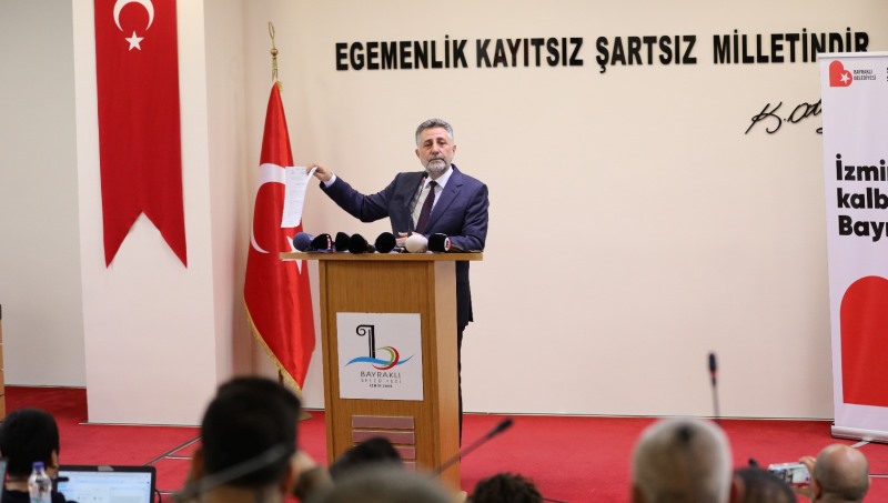 Başkan Serdar Sandal “Yine rezerv alanda 40 dönümlük bir araziyi takas yöntemiyle OYAK’a vermişler. Ballı bir takas. Orman Bakanlığı’ndan TOKİ'ye geçiyor. TOKİ Maliye'ye devrediyor. Maliye takasa gidiyor. Kimin malı nereye gidiyor? Açıklayın, hangi şartlarda hangi koşullarda verdiniz? OYAK oradaki konutları vatandaş için mi yapacak? Başka bir iş için mi kullanacak? Bayraklı, TOKİ'nin bilançosunu düzeltebileceği bir saha değil. Bayraklı herkese, her şeye rağmen İzmir'in kalbi olmaya devam edecek. Türkiye'nin incisi olacak. Ne engeller çıkarırsanız çıkarın, bu kent kendi küllerinden doğma kudretini içerisinde taşıyor. Depremzede yurttaşlarımızın evlerini aldıktan sonra geri kalan yerlerin kime satıldığını tek tek açıklayacağız. Böyle bir işe giren varsa bugünden tezi yok geri dönsün. O hakkı kimseye yedirmeyeceğiz" dedi.
