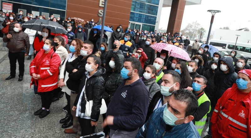 Hizmet binasındaki ziyaretlerin ardından Başkan Sandal'ı, yoğun yağmura rağmen belediye binası önünde toplananDİSK Genel İş 6 No'lu Şubesi'ne bağlı çalışanlar alkışlarla karşıladı.Çalışanlar gibi yağmura aldırış etmeyen Başkan Sandal, şemsiye kullanmadan emekçilere seslendi. 2020 yılının pandemi ve depremin gölgesinde zor şartlarda geride kaldığını vurgulayan Başkan Sandal, "Biz bu kenti idare etmeye değil, yönetmeye ve yeniden inşa etmeye geldik. Hep birlikte başaracağız ve biz her zaman çalışan arkadaşlarımızın haklarını koruyacağız, sizin yanınızda olacağız" dedi.
