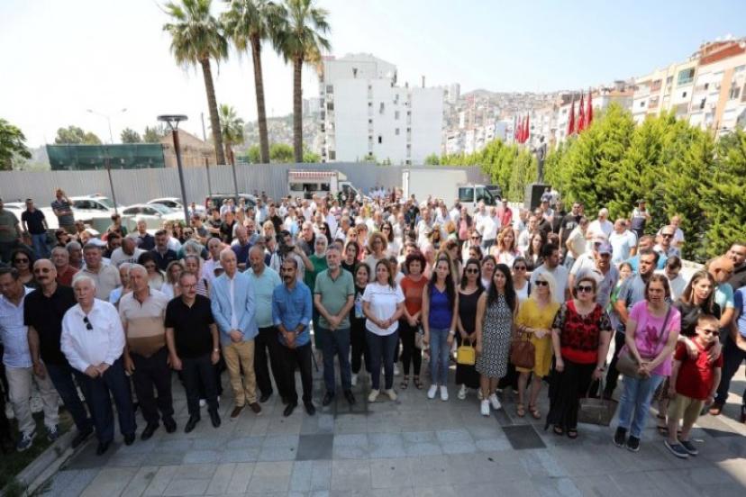 Bayraklı Belediyesi ana bina bahçesinde düzenlenen bayramlaşma törenine Başkan Serdar Sandal, CHP Bayraklı İlçe Başkanı Didem Gültekin, sendika temsilcileri, meclis üyeleri, muhtarlar ve belediye çalışanları katıldı. Konuşmaların ardından Başkan Sandal, personelle tek tek tokalaşarak bayramlaştı.