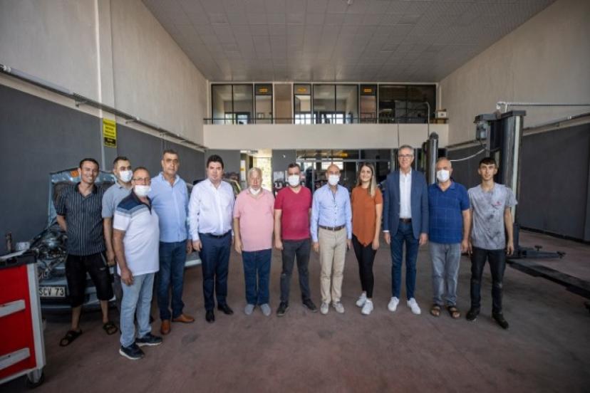 İzmir Büyükşehir Belediye Başkanı Tunç Soyer, Buca’da 6. Sanayi Sitesi Yönetim Kurulu üyelerini ziyaret etti. Ziyarete Buca Belediye Başkanı Erhan Kılıç, Gaziemir Belediye Başkanı Halil Arda, 6. Sanayi Sitesi Yönetim Kurulu Başkanı Sami Özdaş ve eski yönetim kurulu başkanlarından Suat Demirtaş katıldı. Ziyarete tam elektrikli hizmet aracıyla gelen Başkan Soyer, sanayi sitesi esnafının taleplerini dinledi. Sektörün en büyük probleminin kalifiye eleman eksikliği olduğunu dile getiren Sami Özdaş, Başkan Soyer’den nitelikli genç eleman yetiştirilmesi konusunda destek talep etti. Başkan Soyer ise “Usta ve çırak arasında köprü olmaya hazırız. Sizlerin belirlediği meslek grupları dahilinde eleman eksiğiniz kadar kurs açarak hem sizlere hem de yeni yetişecek elemanlara destek olmaya hazırız” dedi.