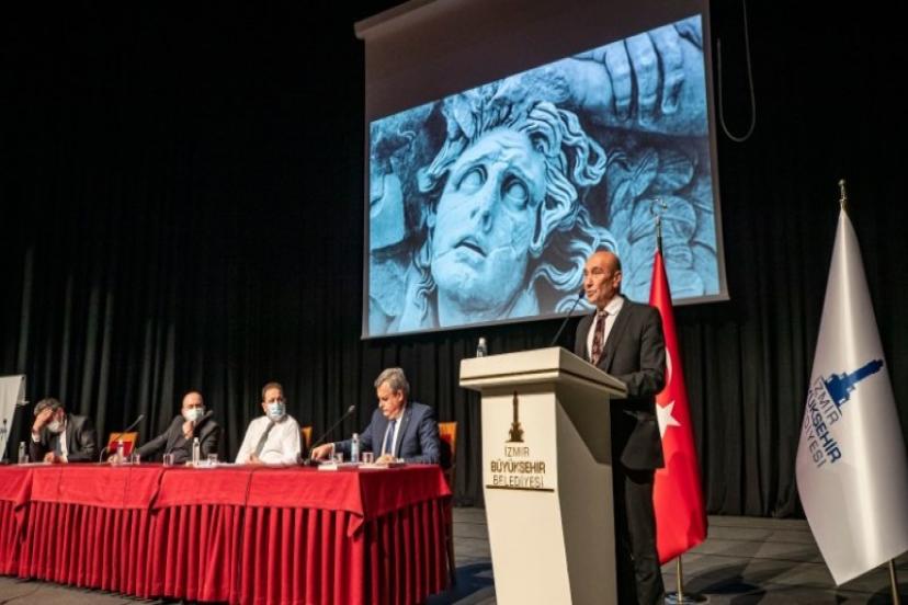 İzmir Büyükşehir Belediye Başkanı Tunç Soyer Bergama Kültür Merkezi'nde 1800’lü yıllarda parçaları Almanya’ya kaçırılan Zeus Sunağı’nın anavatanı Bergama’ya getirilmesi için yol haritasını belirlemek üzere geniş katılımlı bir toplantı yaptı.