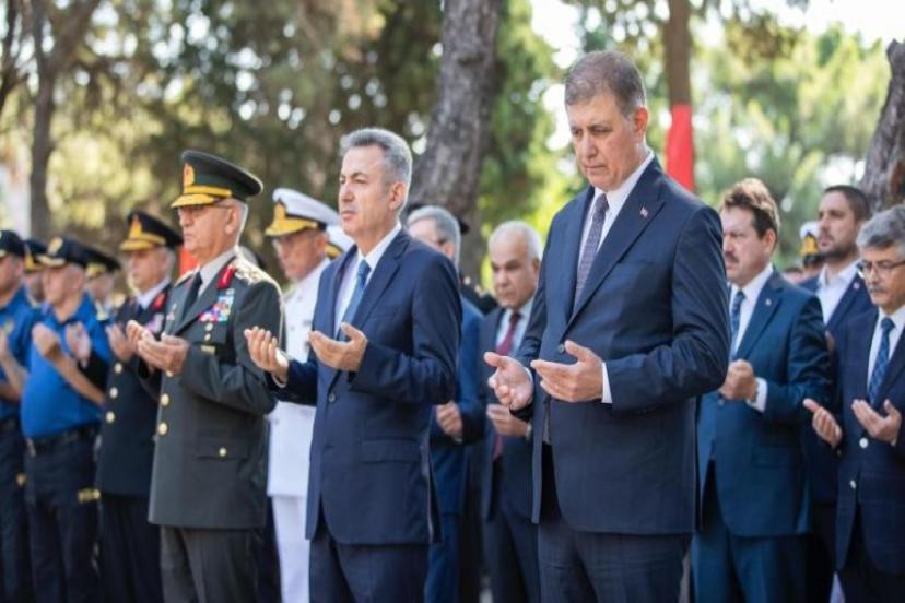 Saygı duruşunda bulunulup İstiklâl Marşı’nın okunmasıyla başlayan tören, Yeşilyurt Ulu Cami İmam Hatibi Sedat Dumlu’nun Kur’an-ı Kerim tilaveti ile devam etti. Ardından İzmir İl Müftüsü Sinan Kazancı tarafından şehitler için dua edildi. Programda İzmir Valisi Süleyman Elban şehitlik defterini imzaladı. Kent protokolü, İzmir Kadifekale Hava Şehitliği’nde bulunan şehit kabirlerine karanfiller bıraktı. Başkan Tugay, Irak’ın kuzeyinde sürdürülen Pençe-Kilit Operasyonu bölgesinde metan gazından etkilenerek 6 Temmuz’da şehit olan Piyade Üsteğmen Ege Akar ve Libya'da görev yaparken kalp krizi sonucu 27 Haziran’da şehit olan Hava Pilot Albay İsmail Haldun Maden'in kabirlerinin başında da dua etti.
