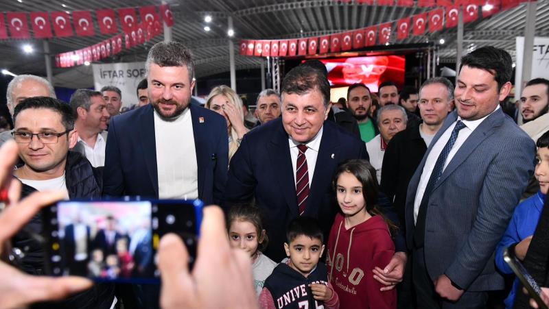 CHP İzmir Büyükşehir Belediye Başkan Adayı Dr. Cemil Tugay, Buca Fırat Mahallesi Ova Pazaryeri’nde, ilçe sakinleriyle iftar sofrasında buluştu. Tugay, CHP Buca Belediye Başkan Adayı Görkem Duman ile CHP Buca İlçe Başkanı Çağdaş Kaya'nın da katıldığı iftarda, yaklaşık 2 bin kişi yer aldı. Programda birlik ve beraberliğin önemine değinen Cemil Tugay, “Şehrimizin ve ülkemizin çok güzel günler görmesini istiyoruz. Bunun için çalışan insanlarız. Bugün burada sizinle iftar sofrasını paylaşmak istedik. Ne mutlu bize ki kardeşlerimizle, büyüklerimizle, çocuklarımızla hep beraber bu sofrada oturduk. İzmir'de güzel ve önemli işler başarmak istiyoruz. Bu hikâyede bizler görev almak istiyoruz” dedi.