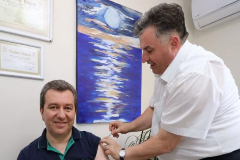 Bergama Belediye Başkanı Hakan Koştu’nun günü gelen 3. doz aşısını Kınık’ın Doktor Belediye Başkanı Sadık Doğruer yaptı. Her iki başkan aşının önemine dikkat çekerek, Koronavirüs illetini yenebilmek için herkesin aşılanmasının şart olduğunu söylediler.
