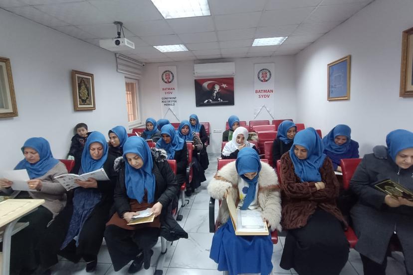 Batman İl Müftülüğü ile iş birliği içerisinde yürütülen eğitimlerde, yetişkin kadınlara Kur’an'ı Kerim’i doğru ve güzel okuma (tecvid), temel dini bilgiler ve siyer dersleri veriliyor.