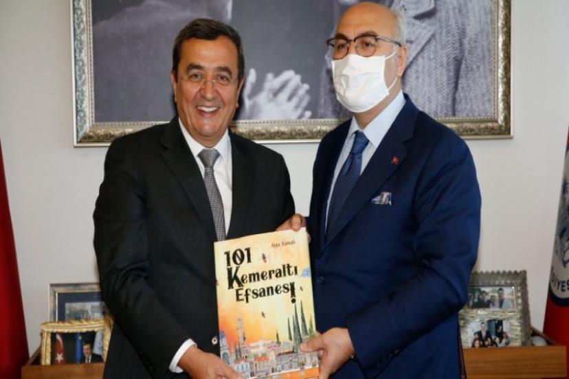 Başkan Batur, ziyaret sırasında Vali Köşger’e Kemeraltı kitabı ve sikke hediye etti.