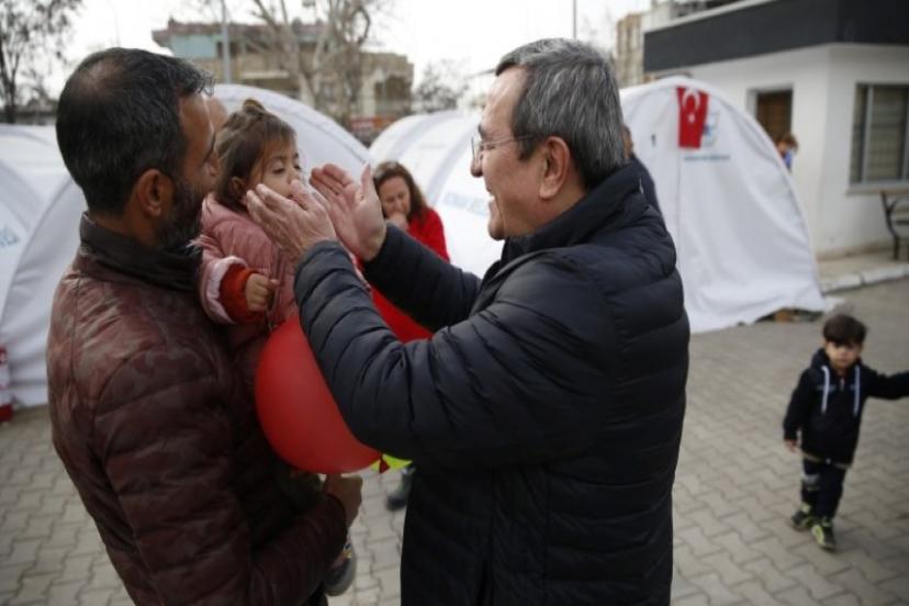 Konak Belediye Başkanı Abdül Batur, CHP Genel Başkan Yardımcısı ve Kahramanmaraş Milletvekili Ali Öztunç, CHP İzmir Milletvekili Sevda Erdan Kılıç, CHP Zonguldak Milletvekili Deniz Yavuzyılmaz ve CHP Trabzon Milletvekili Ahmet Kaya ile birlikte Konak Belediyesi’nin Kahramanmaraş’ın Dulkadiroğlu ilçesinde kurduğu çadır kenti ziyaret etti. Yaklaşık 500 depremzedeye yuva olan yerleşkede deprem felaketinden etkilenen ailelerle buluşan Başkan Batur, hal hatır sordu, depremzedelerle dertleşti, geçmiş olsun dileklerini iletti. Aile büyüklerinden ihtiyaç ve istekleri dileyen Başkan Batur çocukları da unutmadı. Çadır kentte yeni bir hayata başlayan ailelere “Her zaman yanınızdayız” diyen Başkan Batur, çocuklar için kurulan oyun çadırında miniklerle de zaman geçirdi.