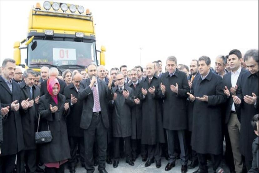Bakan Akdoğan TIR’ları uğurlama törenine katıldı. Yapılan konuşmaların ardından 56 yardım TIR’ı dualar okunduktan sonra uğurlandı.
