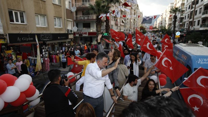 Bayraklı Belediyesinin 19 Mayıs Atatürk’ü Anma, Gençlik ve Spor Bayramı kutlamaları ilçe genelinde büyük coşku yarattı. Başkan Serdar Sandal, akşam saatlerinde kurulan araç konvoyunda tüm mahalleleri marşlar ve şarkılar eşliğinde gezdi. “Vatan, Millet, Atatürk” konvoyunu balkonlarında karşılayan Bayraklılılar bayraklarıyla bayram coşkusuna ortak oldu.