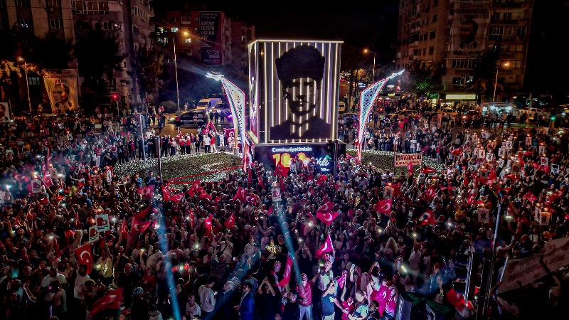 Bayraklı Belediyesi, hafta boyunca süren Cumhuriyet kutlamalarını 10 bin kişilik 100. yıl korteji ile taçlandırdı. İzmir’in kalbine dikilen dev Atatürk Anıtı da görkemli bir törenle açıldı. Başkan Sandal “Aklımızda Cumhuriyet, yüreğimizde Atatürk var. Bu ülkenin bölünmez bütünlüğüyle ve bayrağıyla ilgili geri adım atan namerttir. Yaşasın Cumhuriyet” dedi.