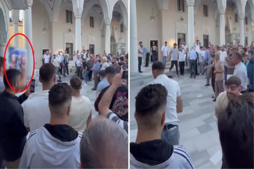 İstanbul Bağcılar'da bayram namazı sonrasında dikkat çeken bir Gazze eylemi gerçekleştirildi. Üzerinde ABD Başkanı Joe Biden ve İsrail Başbakanı Netanyahu'nun fotoğraflarının yer aldığı dev bir pankart camideki vatandaşlar tarafından taşlandı.