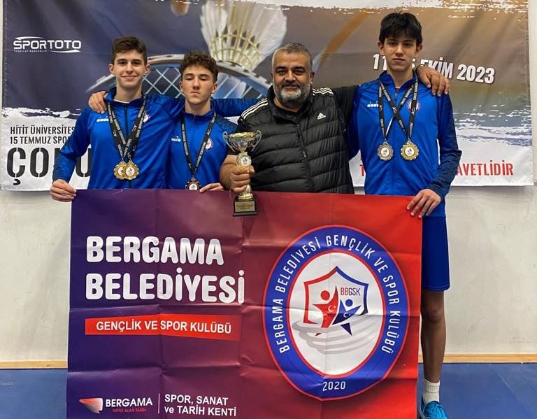 50 ilden yaklaşık 700 sporcunun katıldığı şampiyonada Bergama Belediyesi Badminton Takımı’nın rüzgârı esti. Tek Erkekler Kategorisi’nde Erdal Mert Demirhan birinci, Deniz Baran Karaman ikinci, Rüzgar Oğuz üçüncülüğe yerleşerek Tek Erkekler kategorisini doldurdular. Çift Erkekler Kategorisi’nde de birinciliğe oturan Erdal Mert Demirhan ve Deniz Baran Karaman 15 Yaş Altı Türkiye Badminton Şampiyonasına adlarını altın harflerle yazdırdılar.