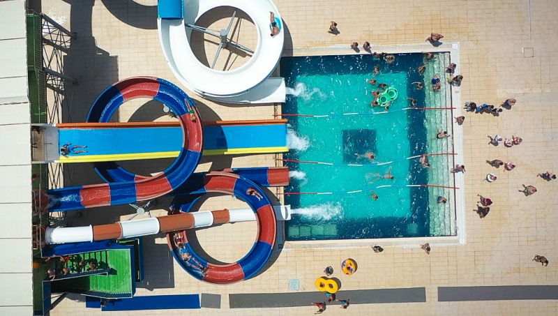 Yüzme havuzu, birbirinden eğlenceli dört kaydırak, çocuklar için ayrı kaydırağın olduğu Aquapark, Pazartesi hariç tüm günler hizmet veriyor.