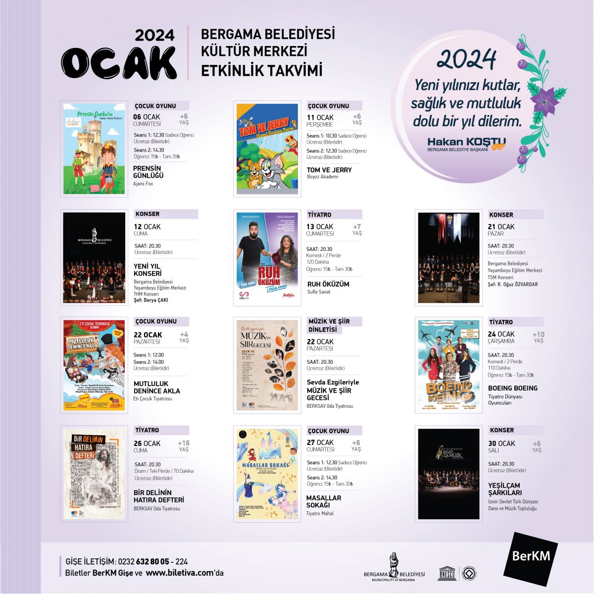 Bergama Belediyesi, 2024’ün ilk ayında da vatandaşlarını kültür – sanat etkinlikleriyle buluşturuyor. Tiyatro, konser, sergi, konferans, müzik ve şiir dinletilerinin olacağı Ocak ayının programı da netleşti.