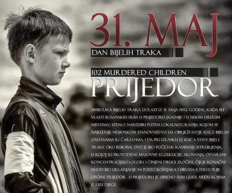 ‘Bizler için bugün günlerden Acı, 31 Mayıs 1992 günü Sırp birlikleri tarafından radyodan geçtiği anonsla, ‘Şehirde Sırp olmayan halkların evlerine beyaz çarşaf asmalarını ve sokağa çıkarken kollarına beyaz kurdele bağlamalarını emretmiştir.’ Diye geçtiği anonsla Prijedor’da Sırpların dışında yaşayanları bu şekilde etiketlemiştir. Bu anonsun ardında gözü dönmüş Sırp Çetnikler binlerce Boşnak ve Hırvat’ı toplama kamplarına götürmüşlerdir.
