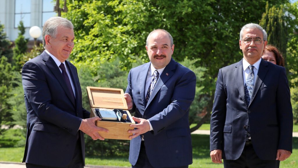 Togg Yönetim Kurulu Başkanı Hisarcıklıoğlu da Devrim Otomobili ve Togg'un kompozisyonundan oluşan bir eseri Mirziyoyev'e hediye etti. Eser hakkında Mirziyoyev'e bilgi veren Bakan Varank, Togg ile yarım kalan hikayenin tamamlandığını söyledi. Gemlik rengi T10X Akıllı cihazı teslim alan Mirzayev, Cumhurbaşkanı Erdoğan'a teşekkürlerini ve selamlarını ileterek, "Bu hediyenin anlamını biliyorum. Türk devletlerinin dünyadaki başarısı olarak kayıtlara geçecektir. Türkiye'nin neler yapabileceğinin bir göstergesidir. Ata yurdunuzun kapıları her zaman size açıktır" dedi.