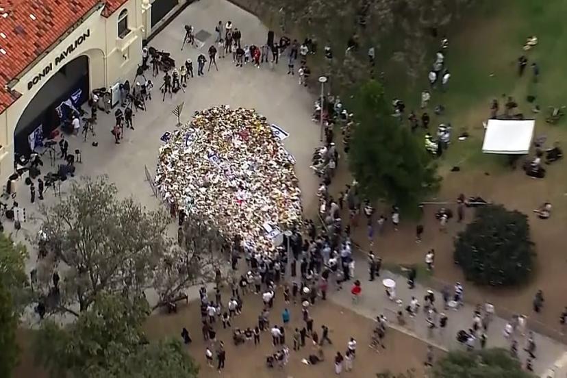 Çiçeklerin ve mumların saldırı yerini işaretlediği Bondi Pavyonu yakınında kalabalıklar toplandı. Polis yakınlarda çalışmalarını sürdürürken, havadan çekilen görüntüler anmanın kapsamını gözler önüne serdi.