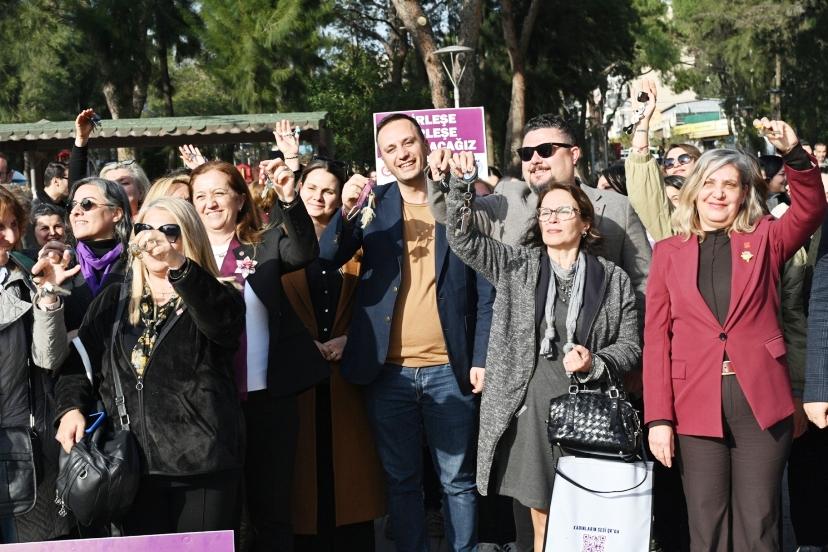 Bornova Belediye Başkanı Ömer Eşki adına konuşan Bornova Belediye Başkan Yardımcısı Duygu Bölük ise 8 Mart’ın yalnızca bir kutlama günü değil, emek ve hak mücadelesinin simgesi olduğunu vurguladı.