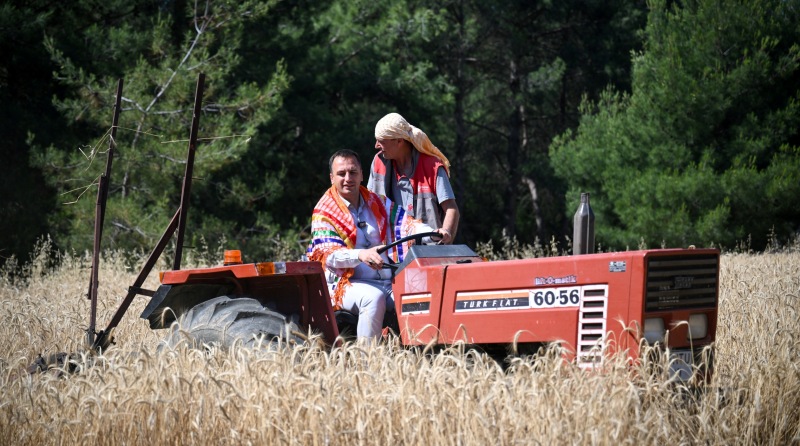Traktörün direksiyonuna muhtarlar ve üreticilerle birlikte geçerek hasadı başlatan Bornova Belediye Başkanı Ömer Eşki, arazide yaptığı konuşmada şunları vurguladı: