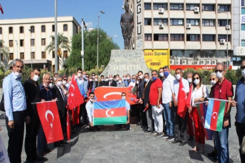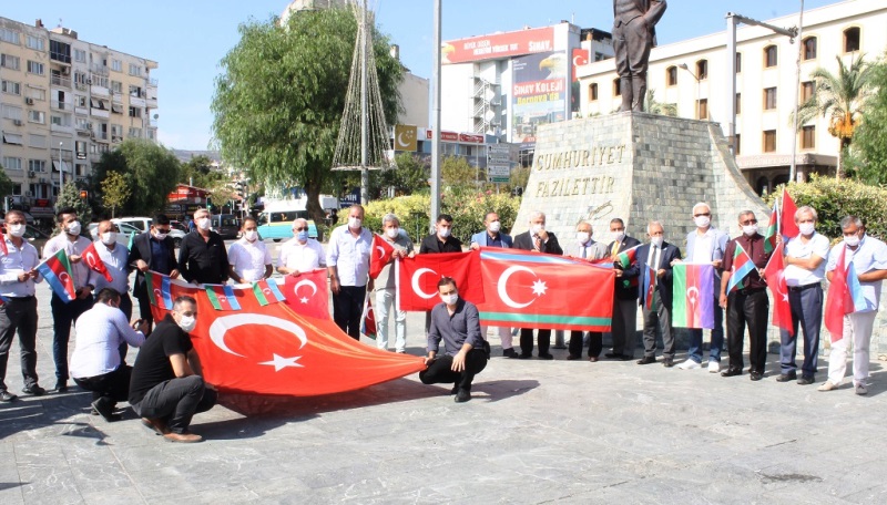 Bornova Cumhuriyet meydanında yaklaşık 50 dernek başkanıyla birlikte Türk Bayrakları ve Azerbaycan Bayrakları ile yaptığı basın açıklamasında Türkiye Cumhuriyeti Devleti ve Türk milletinin dün olduğu gibi bugün de Azerbaycan'ın yanında olduğunu söyledi.