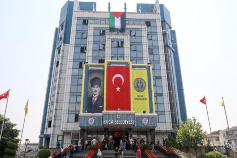 Buca Belediyesi hizmet binasına Filistin bayrağı