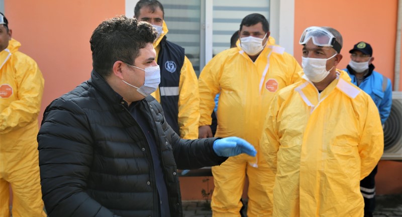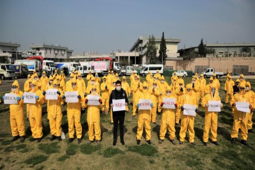 İçişleri Bakanlığı tarafından yayınlanan genelge kapsamında belediye personelinin büyük bölümü faaliyetlerine evden veya dönüşümlü çalışarak sürdürürken, kentin temizliği ve dezenfektesi için Buca sokaklarında gece gündüz demeden çalışan Temizlik İşleri Müdürlüğü tarafından kurulan Covid-19 ile mücadele ekibi için özel önlemler alındı.