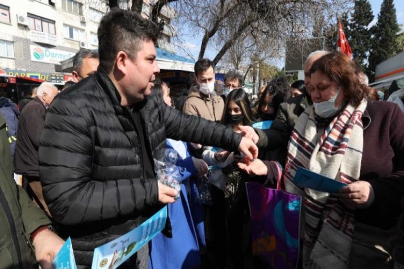 İklim Değişikliği Müdürlüğü, farkındalık çalışmalarına hafta boyunca devam etti. Şirinyer Pazar Yeri önünde düzenlenen etkinlikle vatandaşa bilgilendirme yapıldı. Etkinliğe katılan Buca Belediye Başkanı Erhan Kılıç da Bucalılara “Kaynaklar Sınırlı Her Damlası Değerli” broşürleri ile evlerinde su tasarrufu yapmaları için perlatör dağıttı.