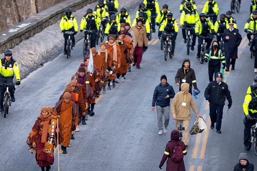 On dokuz keşiş, Teksas'taki Huong Dao Vipassana Bhavana Merkezi'nden Ekim 2025'te yola çıktı; Potomac Nehri üzerindeki Chain Bridge'den geçerek ABD başkentine varmadan önce birçok güney ve doğu eyaletinden geçti.