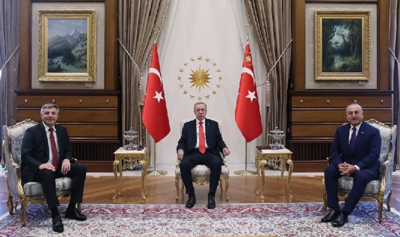 Cumhurbaşkanlığı Külliyesi'nde basına kapalı gerçekleşen kabule, Dışişleri Bakanı Mevlüt Çavuşoğlu da katılmıştı.