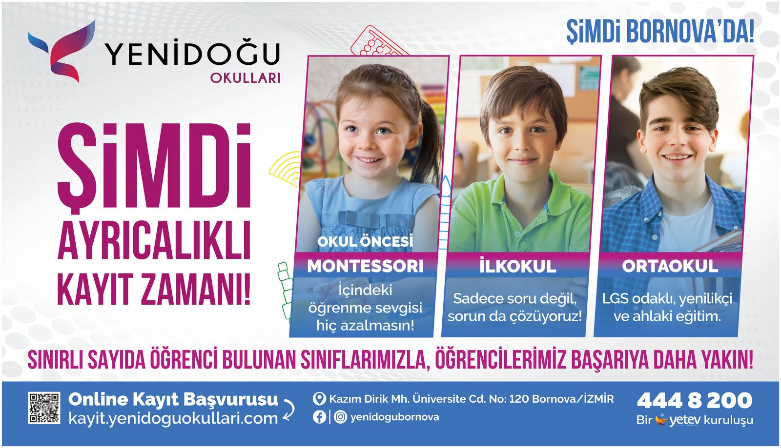 Eğitime getirdiği ‘bütünsel’ yaklaşım modeli ile dikkatleri üzerine çeken Yenidoğu Eğitim Kurumları, Bornova’daki kampus yatırımını tamamlayarak, İzmir’de de hizmet vermeye başladı. Anaokulunda Montessori eğitim sistemini kullanan Yenidoğu, bu yöntemle özgüveni yüksek öğrenciler yetiştiriyor.