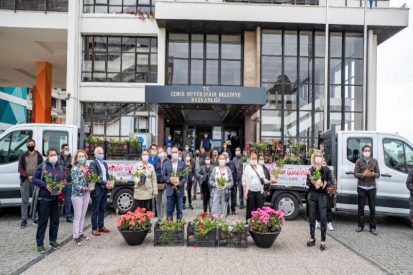 İzmir Büyükşehir Belediyesi anneler gününde hem anneleri sevindirmek hem de zor günler yaşayan çiçek üreticilerine destek için küçük üreticiden aldığı sardunyaları dağıtmaya başladı. Sokağa çıkma yasağı nedeniyle zor günler yaşayan seyyar çiçek satıcıları da ücret karşılığı dağıtımda görevlendirilerek desteklendi.