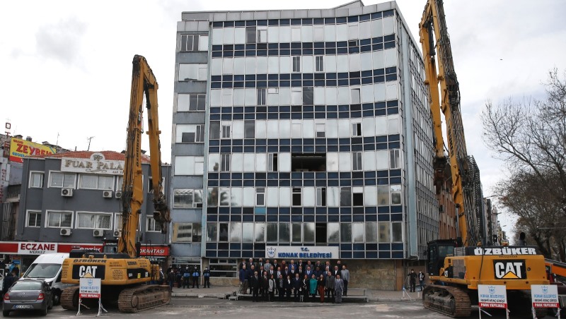 30 Ekim’de yaşanan İzmir depreminin ardından tahliye edilen, yapılan incelemelerde orta hasarlı bulunan Konak Belediyesi’nin Basmane’deki hizmet binasının yıkımına başlandı. Vatandaşların daha çok “Cam bina” olarak adlandırdıkları 56 yaşındaki binanın yıkımından önce Konak Belediye Başkanı Abdül Batur ve Konak Belediyesi Meclis Üyeleri, emektar binanın önünde hatıra fotoğrafı çektirdi. Konak Belediyesi’nin Basmane Meydanı ile özdeşleştiğini ifade eden Başkan Batur, yıkılan binanın yerine, yeni deprem yönetmeliğine uygun, modern inşaat teknolojileri ve mühendisliği ile dayanıklı bir bina inşa edilerek belediyenin tüm birimlerinin bu binaya toplanacağını vurguladı ve şunları söyledi: