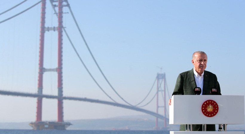 Başkan Erdoğan, "Türkiye orta açıklığı itibarıyla dünyanın en uzun köprüsüne sahip Japonya'yı geride bırakarak, bu alanda ilk sıraya yerleşti" dedi.