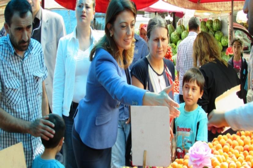 Ak Parti İzmir milletvekili Nesrin Ulema, Bornova Yeşilova’da kurulan Cumartesi pazarını ziyaret ederek, esnafların sorunlarını dinledi. Çarşıyı gezerek esnafla tek tek sohbet eden ve sebze meyve fiyatlarını kontrol eden Ulema, fiyatlarda ki düşüşe dikkat çekerek, “Bazı dönemlerde mevsimi olmasına karşın olağan dışı fiyatlar görüyoruz. Biz geçmişte bir gün önce 10 TL olan ürünün ertesi sabah 20 TL olduğu dönemleri çok iyi biliyoruz. Bizim dönemimizde bunlara izin vermeyeceğiz” dedi.