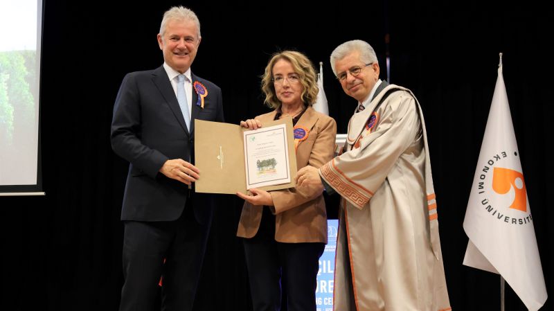 Büyük heyecana ve coşkuya sahne olan İzmir Ekonomi Üniversitesi 2025-2026 Akademik Yılı Açılış Töreni, yoğun bir katılımla gerçekleşti. Üniversitenin Youtube hesabından da canlı yayınlanan törene; İzmir Ticaret Odası (İZTO) Yönetim Kurulu Başkanı ve İEÜ Mütevelli Heyet Başkanı Mahmut Özgener, Rektör Prof. Dr. Yusuf Hakan Abacıoğlu, İZTO Meclis Başkanı Selami Özpoyraz, mütevelli heyet üyeleri, akademisyenler ve öğrenciler katıldı. Bu yılki akademik açılış töreni kapsamında; profesörlük, doçentlik ve doktor öğretim üyeliği kadrosuna yükselen 73 öğretim üyesi için de ‘Akademik Atama Töreni’ düzenlendi. Ulusal ve uluslararası alanda fark yaratan bilimsel çalışmalara imza atan 54 akademisyene de ‘akademik başarı ödülü’ takdim edildi.
