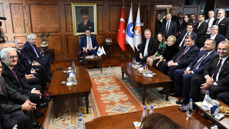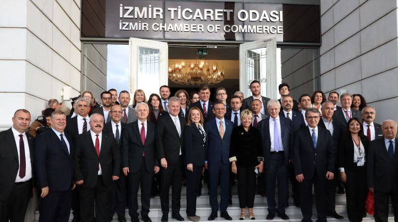 CHP Genel Başkanı Özgür Özel ile CHP'nin İzmir Büyükşehir Belediye Başkan Adayı Dr. Cemil Tugay, İzmir Ticaret Odası (İZTO) Ege Bölgesi Sanayi Odası (EBSO), İzmir Ticaret Borsası iş birliğiyle düzenlenen toplantıya katıldı. İZTO Meclis Salonu'ndaki iş dünyası buluşmasında, İzmir Büyükşehir Belediye Başkanı Tunç Soyer, CHP Genel Başkan Yardımcıları Murat Bakan, Deniz Yücel, Yalçın Karatepe, Volkan Demir, CHP İzmir milletvekilleri, CHP İzmir İl Başkanı Şenol Aslanoğlu, CHP'nin İzmir milletvekilleri, İZTO Yönetim Kurulu Başkanı Mahmut Özgener, Ege Bölgesi Sanayi Odası Yönetim Kurulu Başkanı Ender Yorgancılar, İzmir Ticaret Borsası Yönetim Kurulu Başkanı Işınsu Kestelli, ilçe belediye başkan adayları ve iş insanları katıldı.