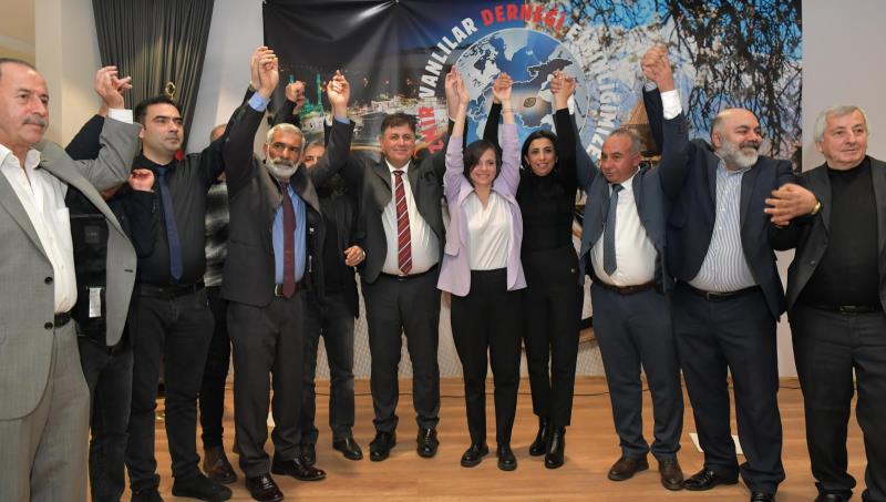 CHP İzmir Büyükşehir Belediye Başkan Adayı Dr. Cemil Tugay, Karabağlar Belediye Başkan Adayı Helil Kınay İnay ve CHP Karabağlar İlçe Başkanı Bülent Sözüpek ile birlikte İzmir’de faaliyet gösteren Vanlı hemşehri derneklerinin Karabağlar’da düzenlediği toplantıya katıldı. Coşkuyla karşılanan ve Van’ın geleneksel lezzeti ‘ayran aşı’ ikram edilen Başkan Tugay, gösterilen misafirperverlikten duyduğu memnuniyeti dile getirdi. Karabağlar’da düzenlenen kadın ve genç buluşmasına katılan Tugay’a İzmirspor atkısı hediye ettiler.