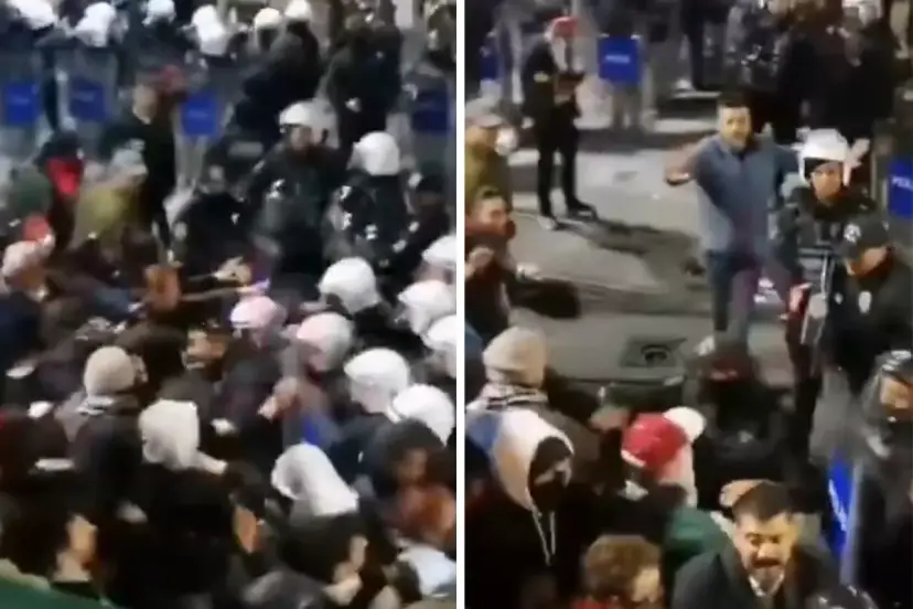 İstanbul Taksim'de Filistin'e destek için düzenlenen yürüyüşe polisin izin vermemesi üzerine göstericiler ve polis arasında arbede çıktı.