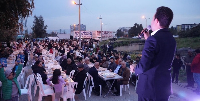 Seçim çalışmalarını vatandaşların yoğun ilgisiyle sürdüren Cumhur İttifakı Karşıyaka Belediye Başkan Adayı İsmail Çiftçioğlu, dün Latife Hanım Mahallesinde kurulan Gönül Sofrası’nda vatandaşlarla birlikte iftar etti. Mahalle sakinlerinin yoğun ilgi gösterdiği Çiftçioğlu, “Önce çocuklar ille de kadınlar ve gençler diyerek yediden yetmişe tüm Karşıyakalılara hizmet etmek için çıktığımız bu yolda her mahallemize eşit hizmet edeceğiz. Karşıyaka’mın her her mahallesinde, her sokağında yaşayan vatandaşım aynı kalitede, hak ettiği standartta belediye hizmetine kavuşacak” dedi.