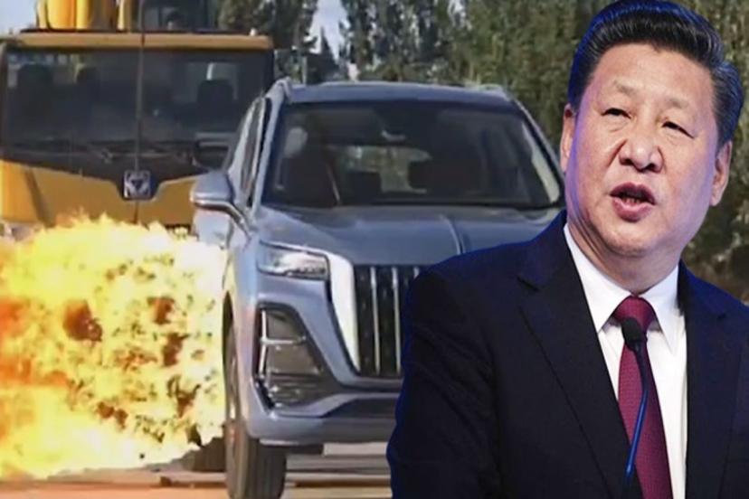 Çin Devlet Başkanı Şi Cinping'in tercih ettiği elektrikli SUV modeli otomobile ateş topu ile sağlamlık testi yapıldı. Ateş topu dev bir vinç yardımıyla son sürat araca çarptırılırken, otomobilin ufak çaplı delikler dışında herhangi bir hasar almaması deneyi gerçekleştiren araştırmacıları bile şaşkına çevirdi.