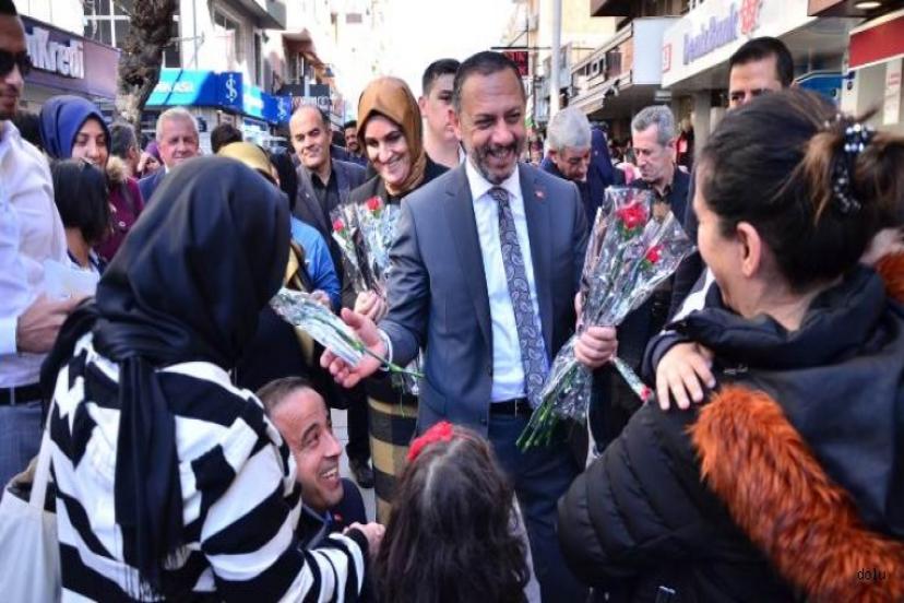 Seçim çalışmalarını yoğun bir şekilde aralıksız olarak sürdüren Ali Aslan, eşi Makbule Aslan ve Belediye Meclis Üyesi Adaylarıyla birçok işyerini ve sokakta karşılaştğı kadınlara karanfil dağıttı. Aslan, çocuklara oyuncak dağıtmayıda ihmal etmedi. Vatandaşın yoğun ilgisiyle karşılaşan Aslan kendisiyle fotoğraf çekilmek isteyenleri kırmadı.