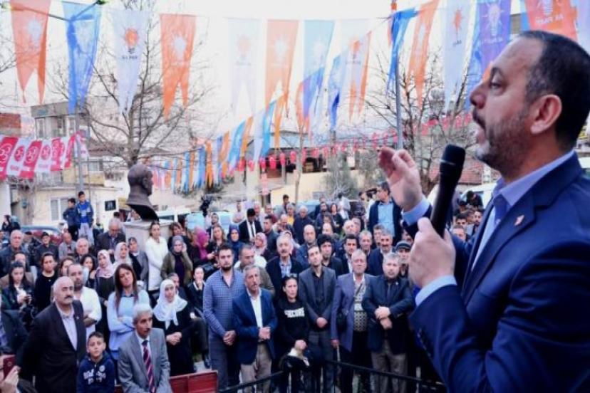 Aslan “Bizim kimsenin siyasi görüşü ve etnik kökeni ile davamız yok. Belediye işi gönül işi biz gönüller yapmayageliyoruz. Nasıl mı yapacağız? Yunus misali yapacağız. Yunus’un dediği gibi biz gelmedik dava için bizim için sevgi için dostun eli gönüllerdir biz gönüller yapmaya geldik. Bu felsefe ile gelen insan işcinin ekmeği ile oynar mı? Bizim ekmekle oynama gibi bir düşüncemiz olabilir mi ? Biz işçi ve emekçi kardeşlerimizin hepsine sahip çıkacağız. Herkese beyaz bir sayfa açacağız.” Dedi.