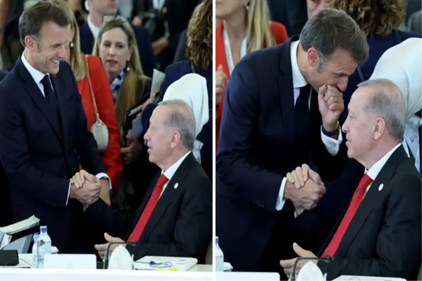 Cumhurbaşkanı Erdoğan, zirvede yanına gelen Fransa Cumhurbaşkanı Emmanuel Macron ile sohbet etti. Macron'un, Cumhurbaşkanı Erdoğan'ın kulağına eğilerek bir şeyler söylemesi dikkat çekti. Erdoğan ve Macron'un neşeli halleri ise objektiflere yansıdı.