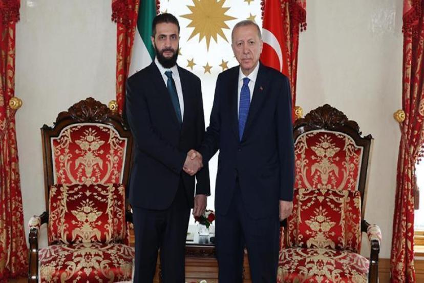 Görüşmede, Dışişleri Bakanı Hakan Fidan, Milli Savunma Bakanı Yaşar Güler, MİT Başkanı İbrahim Kalın, Savunma Sanayii Başkanı Haluk Görgün, Suriye Dışişleri Bakanı Esad Hasan Şeybani ve bazı yetkililer de yer aldı. Görüşme basına kapalı gerçekleşti. Görüşmenin ardından heyetler, yemekte bir araya geldi."TÜRKİYE SURİYE'NİN YANINDA" Görüşmede, Türkiye ile Suriye ikili ilişkileri, bölgesel ve küresel gelişmeler ele alındı. Cumhurbaşkanı Erdoğan görüşmede, Suriye'yi çok daha aydınlık ve huzurlu günlerin beklediğine inandığını, Türkiye'nin bugüne kadar olduğu gibi bundan sonra da Suriye'nin yanında durmaya devam edeceğini belirtti.ABD ve AB'nin Suriye'ye yönelik yaptırımları kaldırma kararından sonra Türkiye'ye ilk ziyaretini gerçekleştiren Şara'ya, yaptırımların kaldırılmaya başlanmasının Türkiye tarafından memnuniyetle karşılandığını ifade eden Erdoğan, Suriye'nin toprak bütünlüğünün korunarak, ülkenin ve ordunun tek bir merkezden idare edilmesinin önemli olduğunu kaydetti.