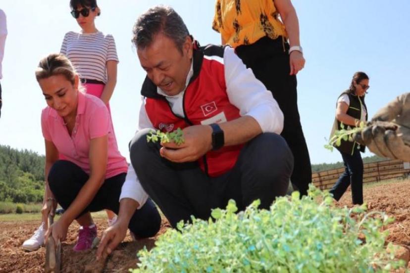 Kemalpaşa ilçesinde gerçekleştirilen projede %75 hibe ile verilen kekik fideleri toprakla buluştu. İzmir İl Tarım ve Orman Müdürü Özen, dikim sırasında üreticilerle bir araya geldi. Tıbbi ve aromatik bitkilerin önemine dikkat çeken Özen: “İzmir’de 1300 dekar alanda 32 çeşit tıbbi ve aromatik bitki yetiştiriliyor. Toprak bakımından seçiciliği az olan ve susuzluğa dayanıklı olan bu bitkilerin yaygınlaştırılması için projeler gerçekleştiriyoruz” dedi.