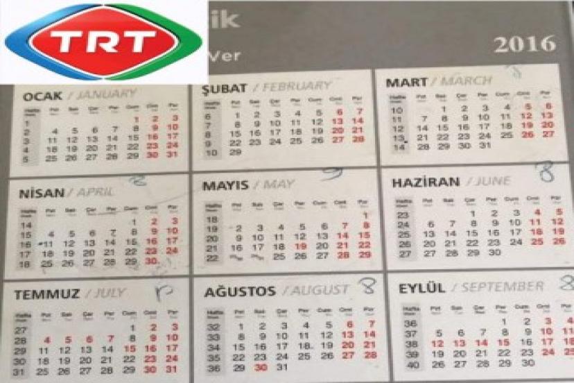 2015'in Aralık ayında hazırlanan ve baskısı tamamlanarak dağıtılan 'TRT Müzik' takviminde korkunç bir detay ortaya çıktı. Resmi tatil ve haftasonu tatillerinin 'kırmızı' olarak yer aldığı takvimde 15 Temmuz cuma günün de 'kırmızı' olması dikkatleri çekti.