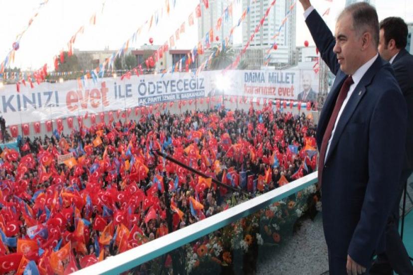 AK Parti İzmir İl Başkanı Bülent Delican; “Yeni ve güçlü bir hükümet sistemine geçişi halkın oyuna götürmeye hazırlandığımız şu kritik günlerde; ülkesini seven, geleceği için kaygı duyan herkesin namerde karşı birleşme zamanı.” diyerek açıklamasını şöyle sürdürdü; “ Bu sistemin tam olarak ne getireceğini mutlaka bilerek sandığa gitsinler. Milliyetçi Hareket Partisi’ne gönül vermiş hemşerilerimin Cumhurbaşkanlığı Hükümet Sistemi’nin getireceği değişiklikleri mutlaka okumalarını, kafa karıştıran karşılaştırmalara, söylemlere prim vermemelerini rica ediyorum. Gün kardeşi kardeşe kırdırmaya çalışanlara karşı; sınırlarımızı zorlayanlara, milli onurumuzu ayakları altına alıp, en dişli silahlarını üstümüze salanlara karşı birleşme günüdür. Ve önce doğruyla yanlışı ayırt etmeye ihtiyacımız var. Tek adamlık, otoriterlik gibi tartışmalarla pompalanan yalan yanlış bilgilere kanmak, bize sadece kaybettirecek. Bunu; bu toprakları vatan yapmak için canını feda etmiş hangi Türk evladı ister!”