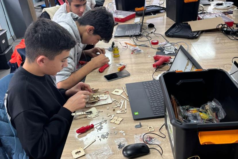 Atölyede verilen robotik derslerde öğrenciler, kodlama ve mekanik sistemleri uygulamalı olarak öğreniyor.