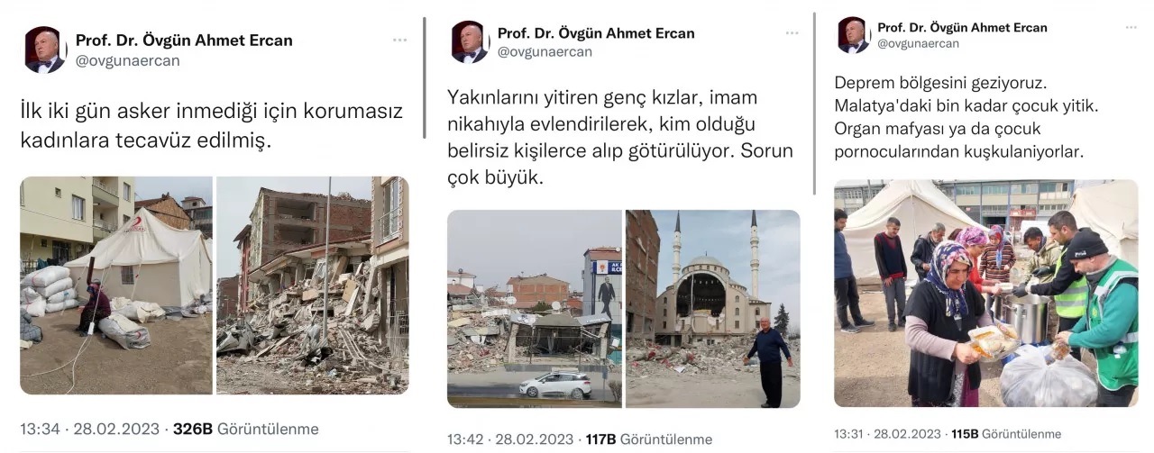Bilim yerine seri yalan üreten Prof. Ercan, 28 Şubat 2023 tarihinde yaptığı provokatif paylaşımları gelen tepkiler üzerine silerek yok etti.